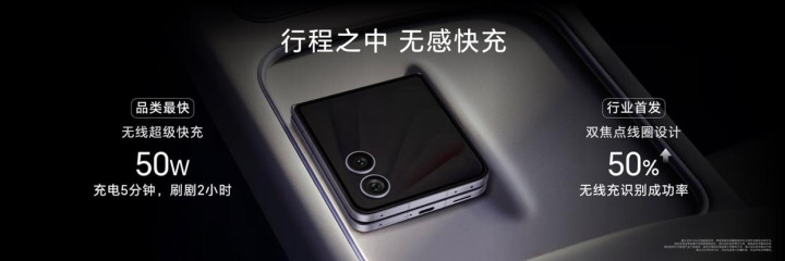 在充电效率上,荣耀Magic V Flip2同样做到了极致。80W有线超级快充与50W无线超级快充的组合,是小折叠领域当之无愧的“最强CP”。特别值得一提的是,针对传统小折叠无线充电时线圈位置偏下、难以对准的通病,荣耀Magic V Flip2首发了无线充电双焦点线圈设计,极大地提升了识别率与充电便利性,真正做到“一放即充”。