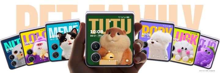 除了硬核的配置,荣耀Magic V Flip2在交互体验上也充满了巧思。其外屏不再只是简单的信息窗口,而是引入了丰富的AI萌宠主题。这些可爱的小伙伴会根据你的使用场景和时间变化,做出不同的互动反馈,让每一次亮屏都充满趣味与惊喜,成为一个更懂你、更有温度的智能伙伴。