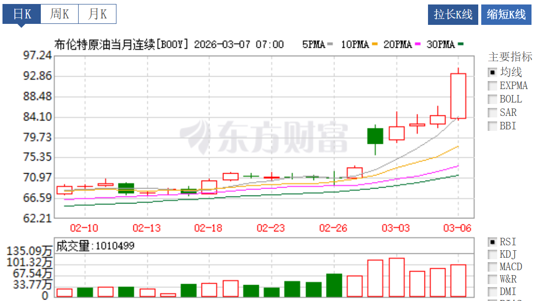 值得关注的是,受地缘政治冲突等影响,3月6日国际原油价格再度飙升。截至当日收盘,美油涨超12%,布油涨超9%。也就是说,本轮成品油价格上调幅度有望进一步扩大,预计将为今年以来上调幅度最大的一轮。