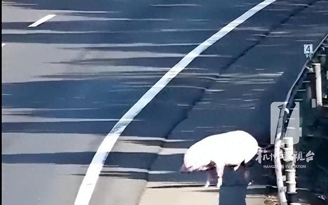 近日,G56杭瑞高速,一头猪从一辆经过弯道的皮卡车车厢内掉落,而驾驶员对此浑然不觉,径直驶离。