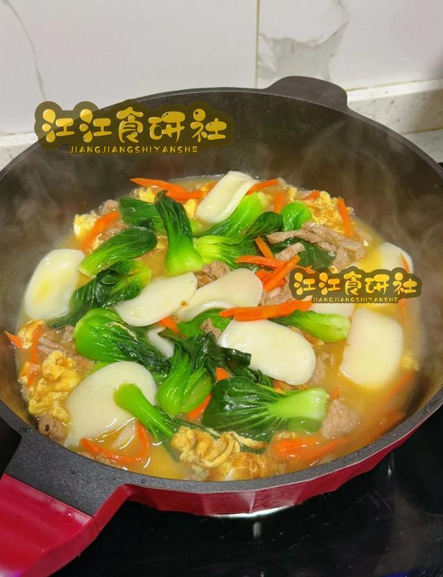 年糕,寓意“年年高升”,是新年必备。用清爽的青菜和鲜嫩的肉丝同煮,既化解了单纯吃甜年糕的腻口,又赋予了“步步高升”之余“清清白白、有荤有素”的好彩头。汤汁融合了肉丝的鲜和青菜的甜,喝起来格外舒坦。