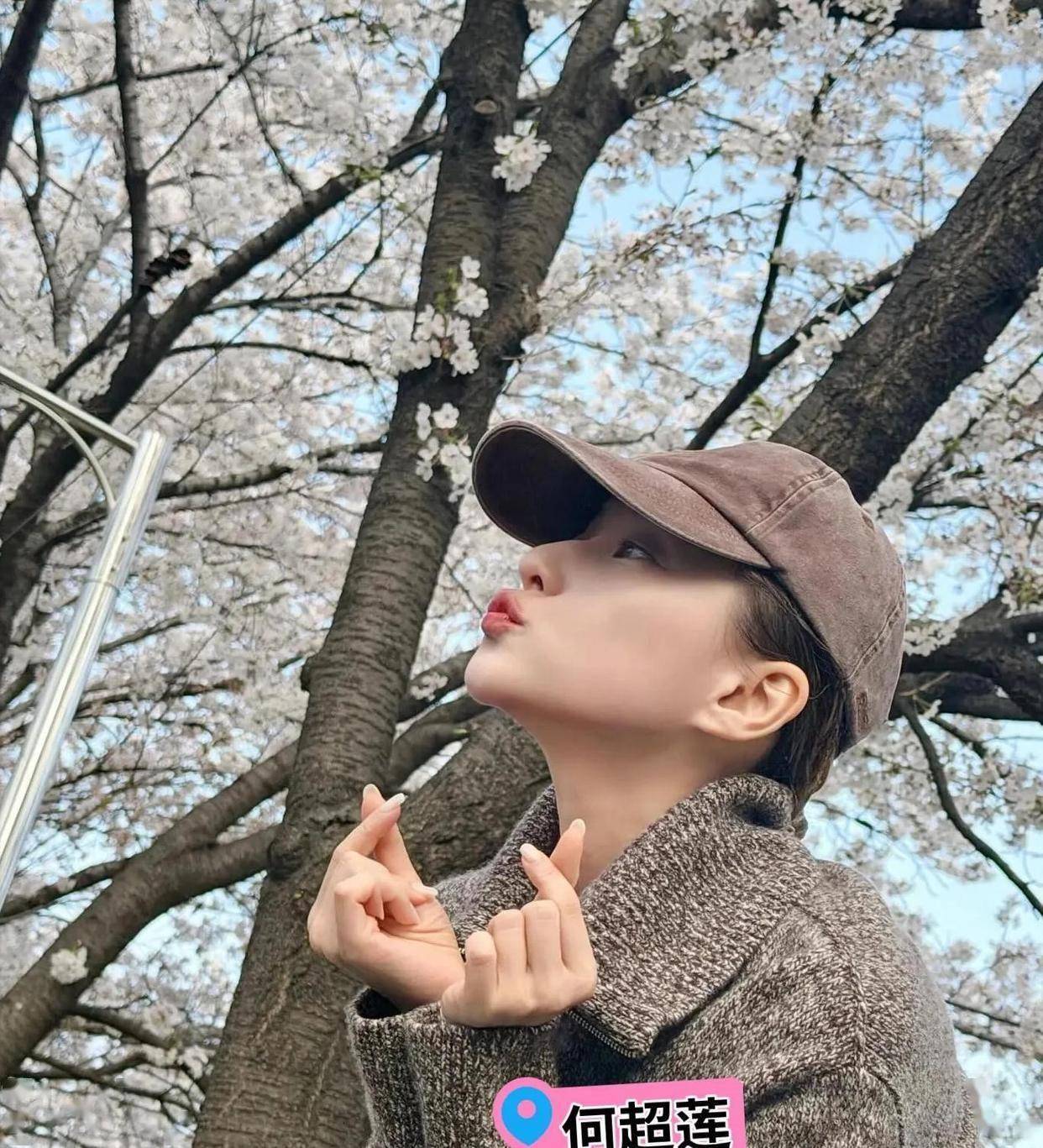 2026年4月的樱花树下,何超莲戴着棒球帽,穿着针织衫,对着窦骁的镜头嘟嘴比心。 窦骁化身专属摄影师,记录下她的每一个瞬间。