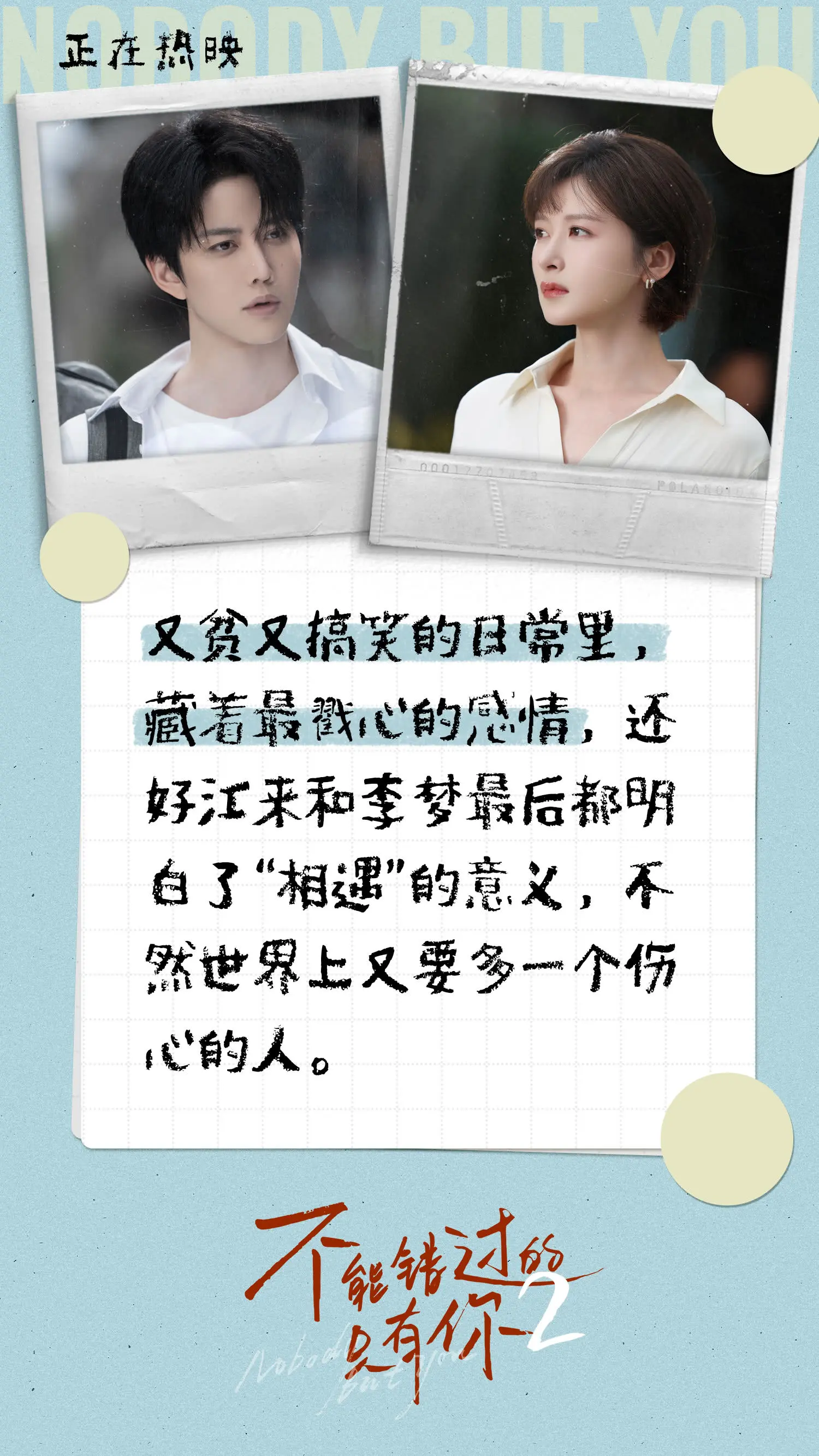 《不能错过的只有你2》不仅是一部爱情电影,更是一场关于现实、勇气与坚守的情感对话。它以“爱赢万难”为核,以治愈为魂,为观众带来笑泪交织的观影体验。三年前,《不能错过的只有你》戳中无数年轻人的爱情心事;三年后,续作携全新故事归来,依旧真诚,依旧扎心,依旧让人相信——真爱值得坚守,不能错过的只有你。